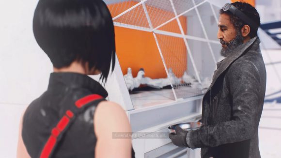 Aber so negativ das jetzt klingt, auch Mirror’s Edge Catalyst hat seine lichten Momente. So sieht die Kulisse wieder prima aus und knüpft an den Minimalismus des ersten Teils an, ohne diesen schlicht zu kopieren. Wenn beim Durch-die-Gegend-pesen mal ein Fluss entsteht, dann ist dies äußerst vergnüglich, besonders wenn man den herumirrenden Wachen buchstäblich im Vorbeigehen die Fresse poliert. Apropos, wie angekündigt wurde das Geballere komplett verbannt, Faith benutzt keine Feuerwaffen, sondern vermöbelt ihre Kontrahenten nach Strich und Faden. Und obwohl das Kampfsystem nicht überragend ist, bereitet es eine gewisse Befriedigung, einen Gegner per Fußtritt gehörig an die Wand zu klatschen. Trotz des Bemühens manchen Klischees konfrontiert einen Catalyst mit einem ansprechenden Setting und einigen interessanten Charakteren. Zu diesen zählt nicht zuletzt die Protagonistin selbst, deren Hintergrundgeschichte näher beleuchtet wird.