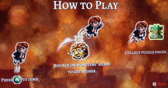 1. Halte Braid nicht für ein schlechtes Jump’n’Run. Das mag jetzt schon sehr subjektiv erscheinen, aber der Gag ist, dass Braid kein schlechtes J’n’R sein KANN, weil es eben überhaupt kein J’n’R IST. Es sieht halt nur so aus. Ja, die ganze Welt 2 funktioniert nach klassischen J’n’R-Regeln, aber eben nur die. Als fast allgemeingültig kann man festhalten: Wenn du das Gefühl hast, deine Geschicklichkeit oder deine Reaktionen reichen im weiteren Spielverlauf nicht aus – dann machst du was falsch. Das mag auf die ersten vier Blicke gar nicht danach aussehen, aber eigentlich gibt es immer eine elegantere Lösung, die nur ein Minimum an Handaugenkoordination verlangt. Für uns Holzköpfe ist aber gut zu wissen, dass viele der Rätsel (denn das ist Braid nämlich in echt: Ein Rätselspiel) auf verschiedene, teils auch stumpfe Art und Weise gelöst werden können. Um mich wieder auf den ersten Satz dieses Absatzes zu beziehen, möchte ich noch hinzufügen, dass ich nie Probleme mit der Steuerung oder ähnliches hatte, die Vorwürfe ob des schlechten J’n’R-Daseins beziehen sich eher auf die geringe Länge, niedrige Feindvielfalt und Mangel an Items.