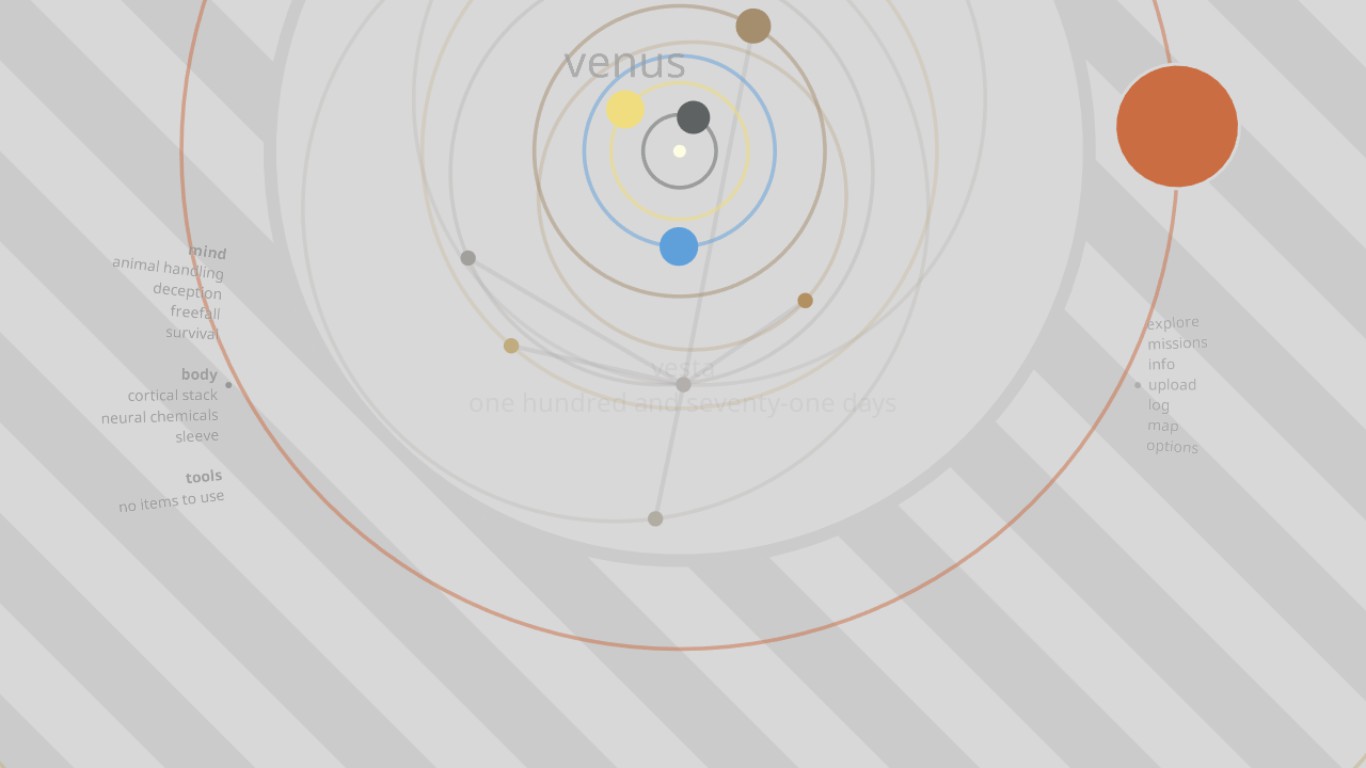 Für all diejenigen, die mit Sunless Sea, Fallen London, 80 Days und Sorcery! Etwas anfangen können, ist sundogs das gefundene Fressen. Im Prinzip ist sundogs ein Choose your own Adventure-Buch, oder eine Art Text Adventure, bei dem ich den nächsten Schritt bestimme, indem ich mir das nächste Ziel aussuche. Was sundogs an Grafik fehlt, macht es an hervorragend geschriebenem Text wieder wett. Allerdings braucht es wie bei den meisten Vertretern dieses Genres ziemlich gute Englischkenntnisse, um mit der Geschichte mitzuhalten. Zu entspannender Ambientemusik klicke ich mich durch die toll geschriebenen Hintergründe, vergeblich auf der Suche nach einem Storystrang, aber trotzdem voller interessanter Geschichten. In sundogs ist der Menschheit längst die Besiedelung anderer Planeten gelungen, und auch der Tod ist kein Hindernis mehr. Personen definieren sich nur noch über ihren Geist, beim Sterben wird der Charakter einfach in einen neuen Körper geladen. Entsprechend sorglos kann ich mich auch durch die Gefahren des Sonnensystems klicken, im schlimmsten Fall verliere ich höchstens meine Modifikationen bis zur letzten Speicherstation. Wer gern ließt und keine durchgehende Story braucht, um die Konzentration zu behalten, der wird hier Spaß haben.
