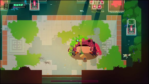 Wenn das nun alles so verdammt prima ist, warum redet dann schon jetzt keiner mehr von Hyper Light Drifter? Während am Spiel selbst wenig zu tadeln ist, stellt das Erscheinungsdatum der Konsolenversionen möglicherweise einen Fehler dar. Ich startete das Spiel am Veröffentlichungstag auf der Gewinnermaschine PS4 und habe es bis heute nicht beendet, da mir No Man’s Sky dazwischengegrätscht ist und nun meine spärliche Videospielzeit beansprucht. Vermutlich haben viele durch den nahenden Release der Weltraumsause erst gar nichts vom famosen Pixelklumpatsch mitbekommen, was wirklich sehr schade ist.