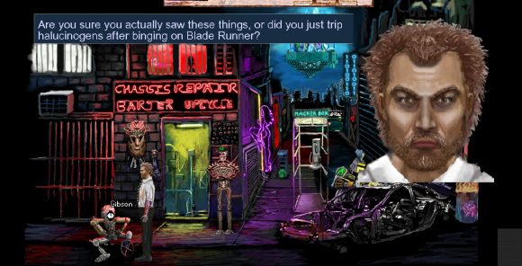 Neofeud, entwickelt vom hawaiianischen Ein-Personen-Studio Silver Spook, bewirbt sich als Game of Thrones nach dem Untergang der modernen Gesellschaft. Großer Fehler. Erstens sollte man sich, wenn man beansprucht, eine anspruchsvolle Geschichte mit tiefer politischer Aussage zu erzählen, nicht freiwillig mit Game of Thrones vergleichen. Zweitens ist der Trend, Medienprodukte, die sich mit Politik beschäftigen, mit GoT gleichzusetzen selbst dann ausgelutscht, wenn sich abseits dessen wenigstens noch ein paar Gemeinsamkeiten finden lassen. Neofeud hat bis auf die Beschäftigung mit einer neofeudalen, also nach dem Weltuntergang zurück ins Mittelalter verfallenen Weltordnung nichts mit politischen Intrigen am Hut. Es versucht zwar, gegen Ende eine politisch durchgesetzte Revolution gegen die herrschende Ordnung abzubilden, der eigentlich spannende Teil des Spiels findet aber weit davor und darunter statt: In den Armenvierteln von Coastlandia City, Tijuana, einer Industriemetropole im westlichen Mexiko. Regiert wird diese Stadt von einer aus den pervertierten Oberschichten des heutigen Kapitalismus zusammengeschmolzenen Herrscherkaste: Den Clington-Busches, den Merkel-Lecroixes (kein Scheiß!). Selbstverständlich schweben diese dank modernster Technologie in Wolkenstädten über den eigentlichen Ballungsräumen, in denen sich vor allem ein Problem abzeichnet: Seit geraumer Zeit sind Maschinen zu intelligentem Leben erwacht und verlangen zusammen mit den in der Apokalypse entstandenen humanoiden Mutanten Menschen- und Bürgerrechte. Dieses Anliegen scheint aber bereits vor langer Zeit gescheitert zu sein, denn zum Handlungszeitpunkt Neofeuds müssen sich Humanoide — wie alles, was nicht komplett menschlicher DNA entspricht, in Coastlandia genannt werden — einem manipulierten Gehirnwellentest unterziehen, der sie in Wesensklassen einordnet. Alles unter Ergebnis 4.1 gilt als tierische Intelligenz, ohne Chance auf Anerkennung der Mündigkeit. Das durchschnittliches Ergebnis dieses Tests liegt wenig überraschend bei 3.9.