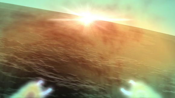 Aber das ist ja noch nicht das Spiel. Das beginnt wie ein Schlag in die Magengrube. Wobei es eigentlich zwei Schläge sind. Der erste Punch ist eine verhängnisvolle Gameplay-Fehlentscheidung — womöglich aus den erwähnten finanziellen Motiven heraus getroffen — und der zweite ein künstlerischer Offenbarungseid. Fangen wir erst einmal mit dem Gameplay an. Wenn man schon als Superheld über den Planeten rast und die beiden Hände des Helden zu sehen sind, dann sollten auch gefälligst die Move-Controller unterstützt werden. Genau für solche Spiele sind sie doch da. Zwingend das Gamepad nutzen zu müssen, fühlt sich falsch an und war für mich direkt ein Immersionskiller. Was verhängnisvoll für ein Spiel ist, das nicht viel mehr als VR-Aha-Erlebnisse zu bieten hat. Andererseits ist es leider auch wurscht, ob man nun mit dem Gamepad oder den Move-Controllern knapp an den bösen Invasoren vorbeischießt und sie trotzdem trifft, denn beides ist Mist. Wenn schon Gegner rot erleuchtete Schwachpunkte haben, dann sollte sie auch eine Funktion haben. Übrigens: Wenn man nicht so knapp an den Zielen vorbeischießt, wird man quasi zum Kompagnon der Invasoren, denn der Bodycount, anhand dessen die menschlichen Kollateralschäden gezählt werden, zählt gnadenlos mit und ich könnte jetzt darüber eine kleine ethische Debatte lostreten, aber eigentlich lohnt es nicht bei einem Spiel wie Megaton Rainfall — das wäre schon zu viel der Ehre.