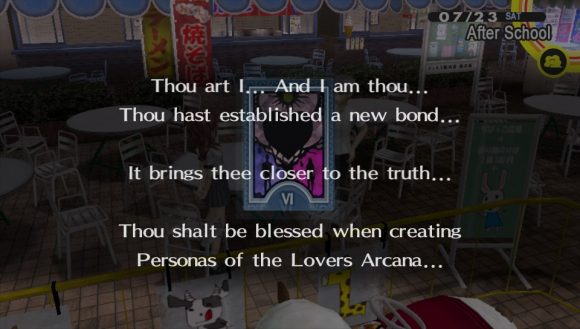 Natürlich wird das den meisten Spielern nicht passieren. Die Persona-Spiele geben genug Anreize, maximal viele Freundschaften bis zur metaphorischen Blutsbruderschaft durchzuziehen. Und hier scheitert die Authentizität der Darstellung und wird videospielig durch und durch: Nicht nur ist jede Freundschaft mit einem schicken Fortschrittsbalken ausgestattet, der in zehn Schritten bis zum verheißungsvollen MAX wandert, am Ende dieses Balkens winkt auch noch eine neue ultimative Beschwörung, die fortan im Kader des Protagonisten mitkämpfen darf. Persona 5 treibt diese Anreize noch weiter und stattet jeden der dort Komplizen genannten Freunde mit zusätzlichen Fähigkeiten aus, die im Laufe der Beziehung nach und nach verfügbar werden. Die Ärztin meines Vertrauens verkauft mir günstige Drogen, weil sie mich mag? Mein Ziehvater zeigt mir, wie man ordentlichen Kaffee braut? Alles Erfolge, die ich mir durch das Hochtreiben eines Punktezählers verdient habe, der zufällig auch noch anzeigt, wie gern mich dieses süße Mädchen aus der Parallelklasse hat.