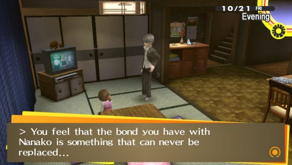 Für die beste Darstellung halte ich sie natürlich, weil die Persona-Serie quasi die einzige ist, die überhaupt versucht, den Prozess des Freundefindens spielerisch umzusetzen. Anders als squadbasierte Rollenspiele wie Dragon Age oder Mass Effect, in denen der intimere Bekanntenkreis der ProtagonistIn quasi ausschließlich aus den mitkämpfenden Partymitgliedern besteht, agiert Persona nach dem Prinzip „Unverhofft kommt oft“. Sei es in der Schule, beim neu angetretenen Nebenjob oder eben durchaus auch im Mitstreiterkreis: Die Protagonisten der Reihe lernen immer dann neue Leute kennen, wenn sie sich aus ihrer Comfort Zone hinaus und in neue soziale Kreise bewegen, nicht unähnlich dem echten Leben. Bereits der initiale Aufbau jedes Persona-Spiels lässt nichts anderes zu: Als Austauschschüler betritt der Spieleravatar ab Tag Eins eine ihm unbekannte Welt, die bereits im familiären Umfeld beginnt. Es ist gut möglich, dass das so bleibt; beschäftigt man sich lieber damit, Gewichte zu heben oder Videospiele zu spielen, als mit den neuen Bekanntschaften und der dazugewonnenen Familie Bindungen aufzubauen, ist es ein durchaus realistisches Szenario, das Spiel mit nicht mehr als den durch die Story vorgegebenen Freunden zu beenden.