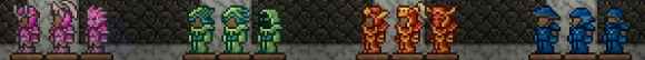 Glücklich stelle ich eine humanoide Holzpuppe zwischen zwei weitere auf ein Podest und schmücke sie mit der Adamantitrüstung, die ich bis eben noch getragen habe. Jetzt habe ich aufgerüstet, eine stärkere Version aus härterem Luminit geschmiedet. Der alte Harnisch kann damit in den Trophäenraum; schön sortiert zwischen einer noch schwächeren Version aus Cobalt und einem leeren Platz, auf dem einmal die neue Rüstung stehen wird. Überall im Raum verteilt stehen Holzpuppen, oft schon bestückt, aber meistens noch leer. Jede davon hat Platz für eine Rüstung, die ich noch zusammenbauen muss. Viele davon sind weit schwächer als die jetzige, aber um ihre Kampfstärke geht es nicht mehr. Sie sind mehr geworden als Nutzobjekte: Ich sammle sie.