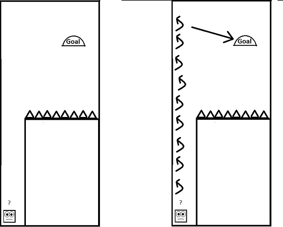 Hier das Konzept für das Tutorial-Level, worauf Kmspirit einen ersten Entwurf erstellte. Anhand dessen habe ich in Game Maker Studios die Kollisionsboxen gesetzt und schließlich folgte von Kmspirit die Endversion mit einigen Änderungen.