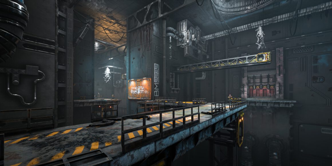 Im Wesentlichen besteht das Spiel aus zwei Arten von Abschnitten: Die Kampfarenen und den Verbindungswegen dazwischen. Letztere gehen erstaunlich gut von der Hand, weil die Parkour-Mechanik und deren Steuerung (Maus & Tastatur) hier ganz gut funktioniert und sich nicht selbst im Wege stehen. Hinzu kommen der schicke Düster-Neon-Look und der überaus gelungene Elektro-Industrial-Soundtrack. Hier ist Ghostrunner deutlich besser gelungen als mein alter Erzfeind Mirror’s Edge, weil auf den Open-World-Ansatz verzichtet wird und man eigentlich immer weiß, wo’s als nächstes lang geht. Die Kampfarenen sind hingegen ein echter Schmerz im Hintern. Ich versuche mal an einem Beispiel zu erklären, woran das liegt: