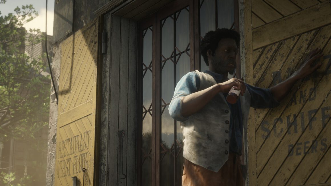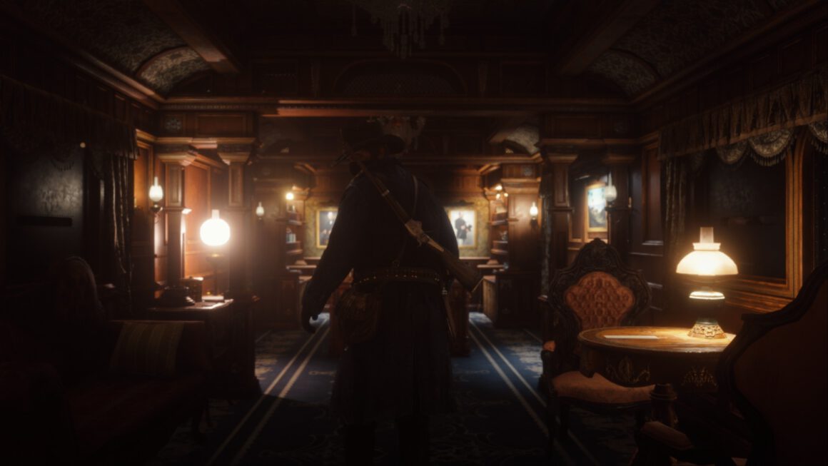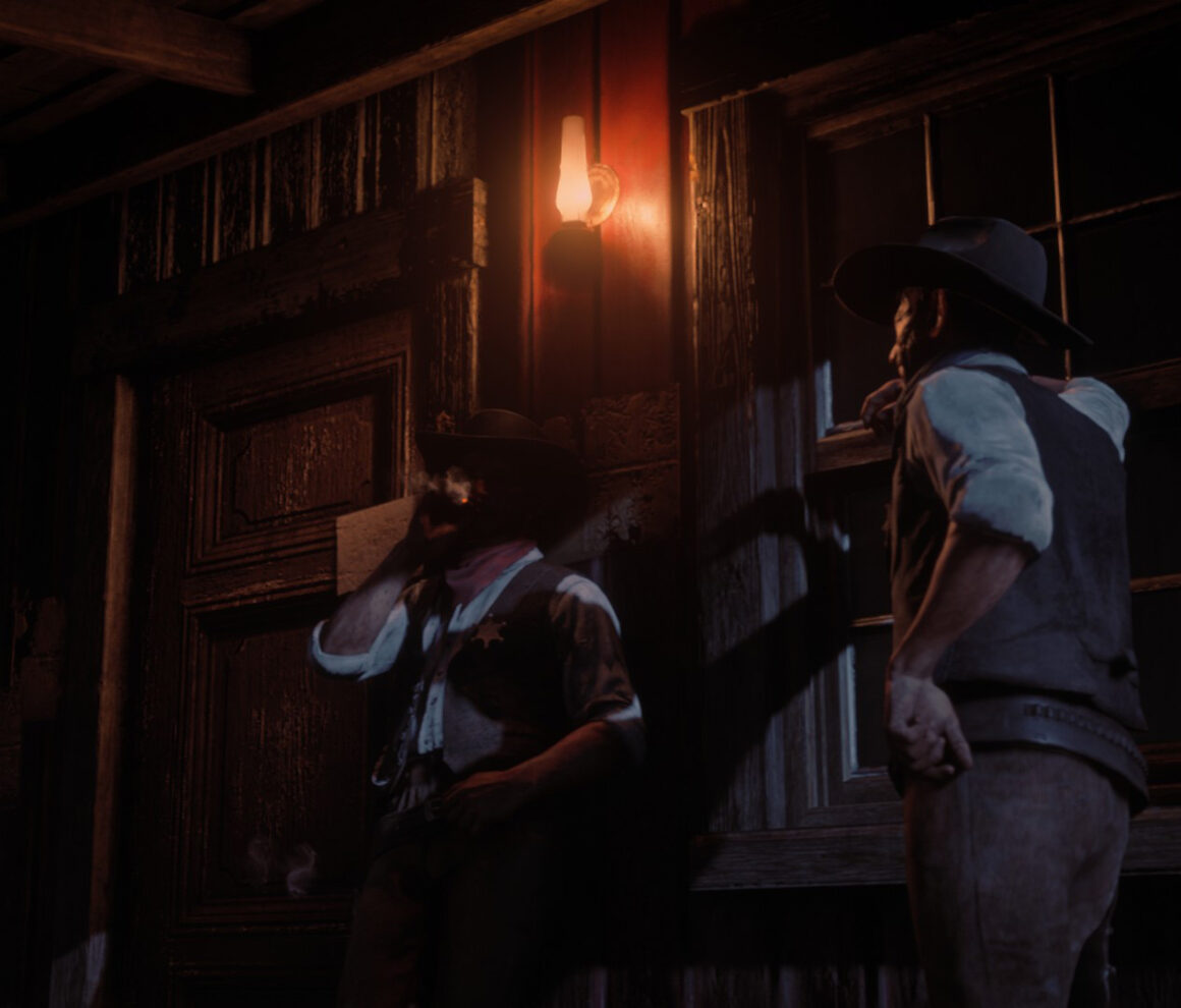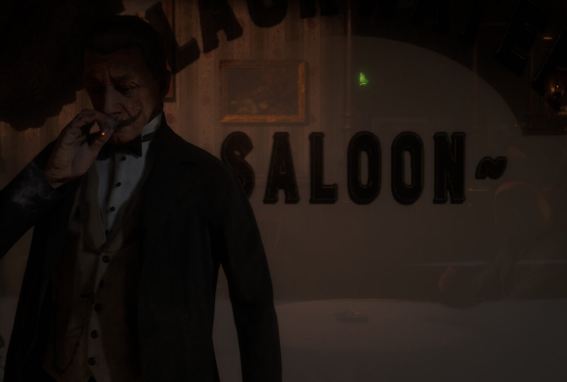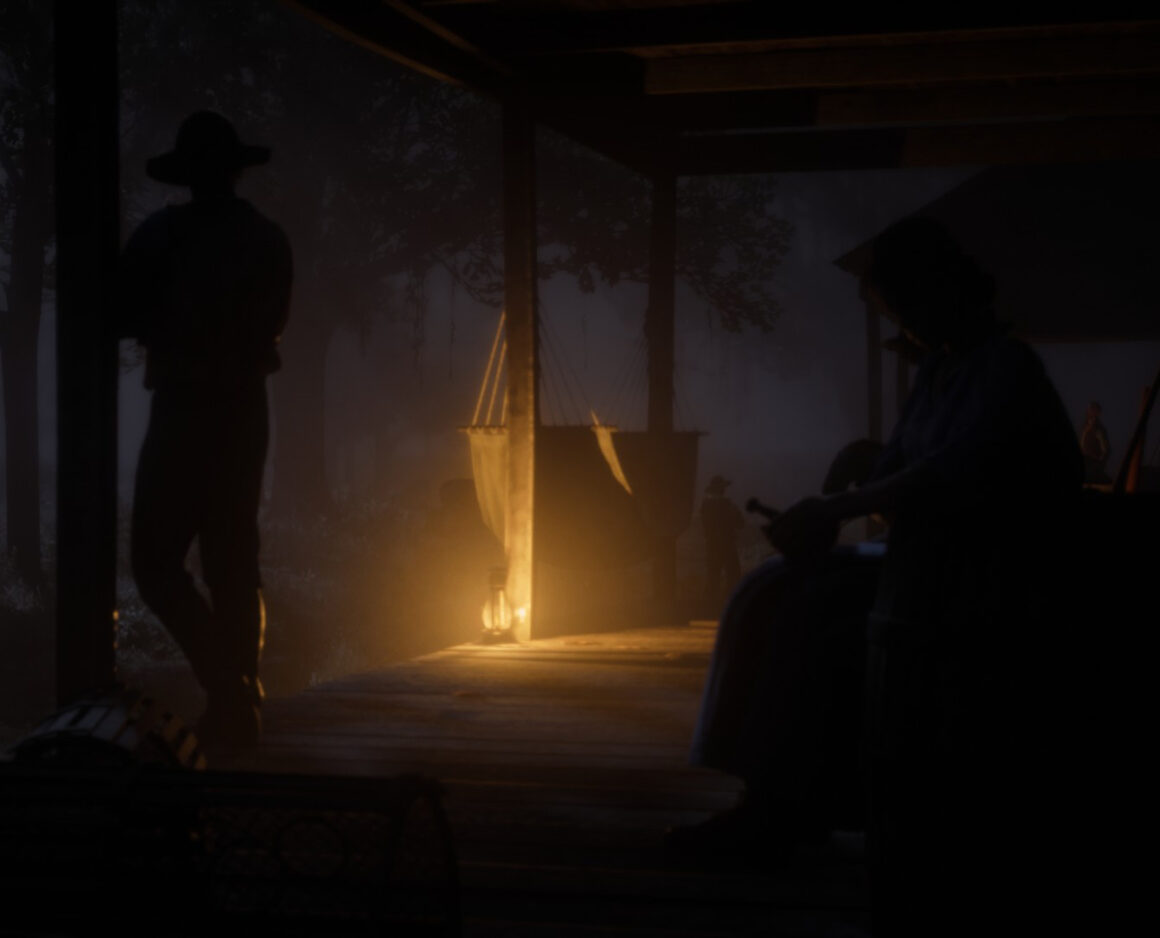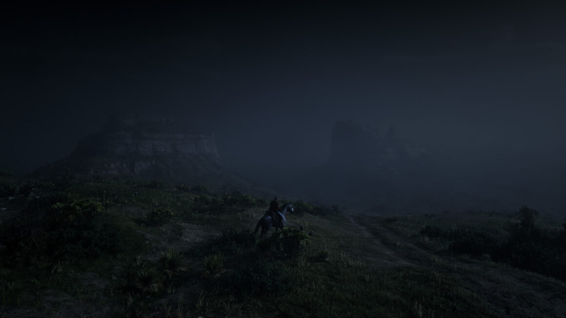 In meiner fotografischen Reise war das Beiwerk von Red Dead Online das alleinige Motiv. Eine Intimität entstand, die natürlich nicht echt war, sich aber aufregend, zumindest neu anfühlte. Da lungerte eine Welt abseits der Missionen, die sich erst jetzt für mich aufbaute und türmte und jede bisherige Erfahrung so nichtig erschienen ließ wie bei dem Blick in jene Augen, in denen die Unendlichkeit der Schönheit Form und Farbe schenkte und alles andere beinahe nimmermehr entglitt.