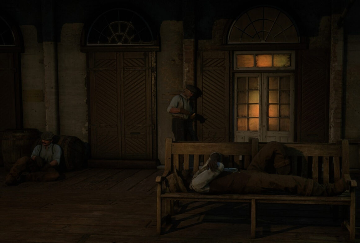 Ihre Flucht endet nicht mit dem Tod, sondern mit einem Bild. Vielleicht haben sie ja doch eine Geschichte, wie sie da über die Gleise humpeln? Huckepacken ihre Vergangenheit und verdorren bei dem Versuch, entdeckt zu werden. Mit ihren Gewehren und Silhouetten, ihren Revolvern und Pixeln starren sie auf die Taten all jener, die nicht der Zufall, sondern der Programmcode zusammenführte. Ein Leben als NPC in Red Dead Online verfällt in jeder Welt in seine Einzelteile, weil es nur nach Vorgaben existiert, nach den Entscheidungen anderer; aber ich möchte eine Rekonstruktion dessen versuchen, was ich nur nebenbei wahrnehme, weil ich fälschlicherweise glaubte, es wäre nicht echt: Das Leben der NPCs in einem Onlinespiel und der (Nicht)Glaube daran – dokumentiert, beobachtet und bewiesen durch die Augen eines Spielers.