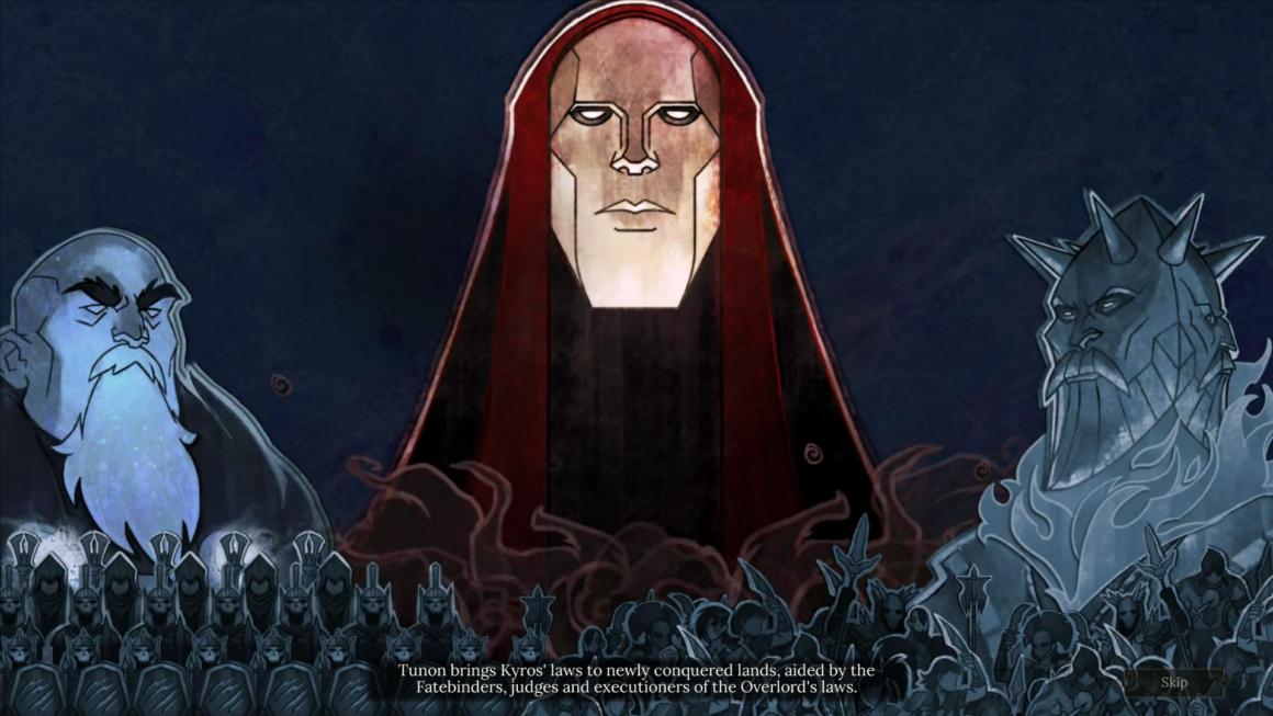 Die Umstände in Tyranny sind, dass in einer von Magie durchwirkten Welt seit 400 Jahren Kyros herrscht. Wir wissen nicht viel über Kyros, nicht mal sein/ihr Geschlecht ist bekannt (wenn es auch unterschiedliche Vermutungen gibt) und Kyros tritt im Spiel auch nicht auf. Aber Kyros Wille ist es, den letzten Landesteil des Kontinents nun endlich zu erobern. Unter dem Vorwand, Frieden zu bringen. Kyros Macht äußert sich in erster Linie durch die „Edikte“ genannten magischen Gesetze, die er/sie erlässt. Diese sind nach ihrer Verkündigung absolut bindend und werden durch Magie durchgesetzt. Und du spielst die Person, die diese Gesetze verkündet, du bist ein „Fatebinder“. Du bist damit die letzte Instanz in der Auslegung des Gesetzes des Kyros. Jemand hat was geklaut: Du entscheidest, ob du das verfolgst, wen bestrafst oder doch lieber Geld einstreichst, um wegzusehen. Und ja, du musst dich dann irgendwann vor dem obersten Richter des Landes rechtfertigen, aber der ist weit weg und bekommt auch nicht alles mit. Wer unzufrieden ist mit deinem Urteil darf sich gerne mit dir körperlich und magisch messen und wahrscheinlich verlieren. Du ziehst durch ein erobertes, teils zerstörtes Land und sollst die Kriegsverbrechen der Armeen Kyros dokumentieren, um festzustellen, wer denn nun Schuld hat an einem Aufstand gegen die Eroberung. Denn Kyros nennt es Frieden, wenn Kyros gesiegt hat und es darf sich niemand dagegen auflehnen. Zumindest niemand, der/die nicht stark genug ist, sich mit Kyros’ Macht zu messen.