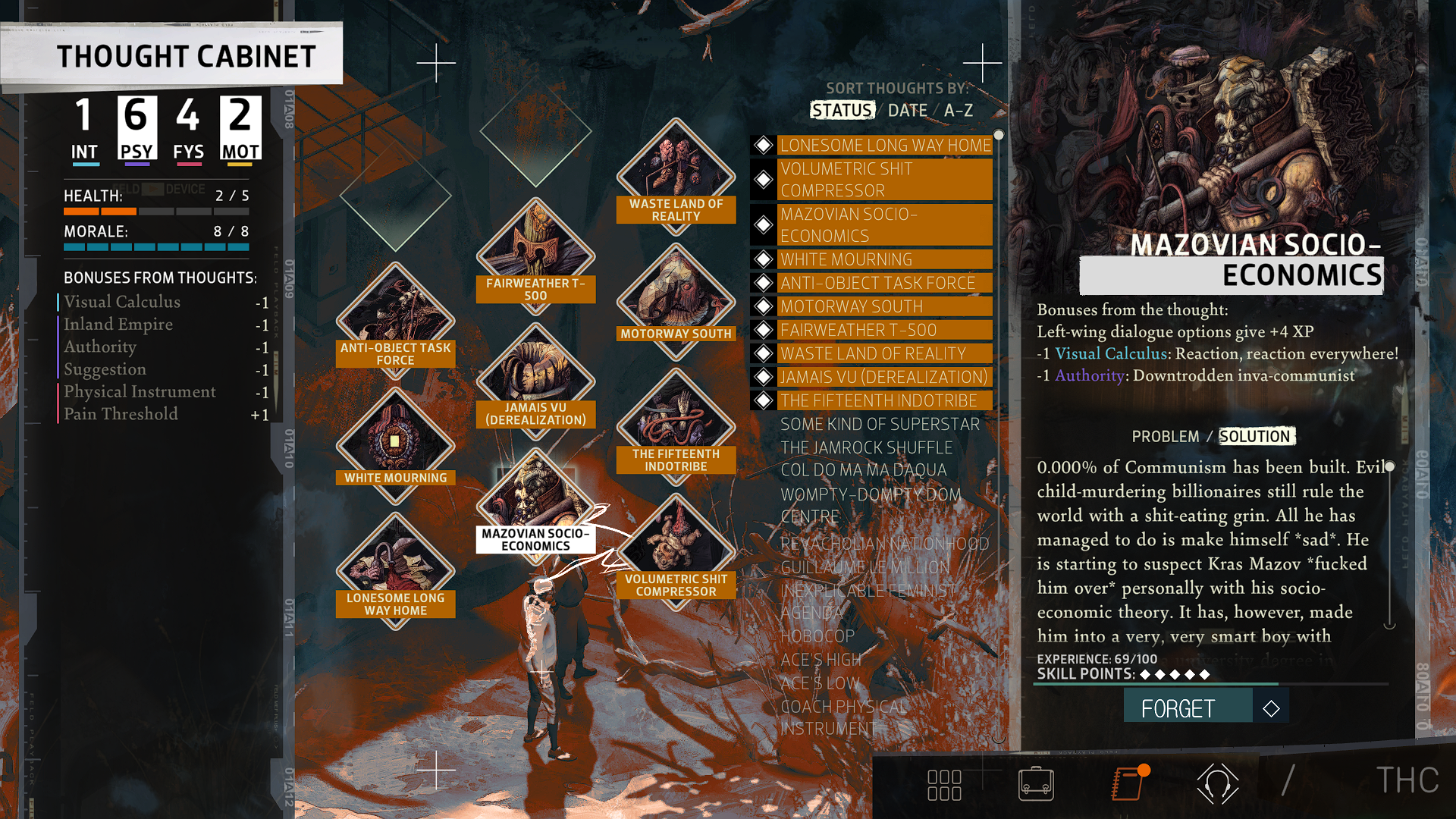 In Disco Elysium ist die Hauptfigur Harry, ein alkoholkranker, kettenrauchender Cop, der auch nach Katharsis oder wahlweise Drogen sucht. Die Welt, in der er lebt, ist die der gescheiterten, niedergeschlagenen Revolution von Revachol. Die Revolution wurde mit den Kanonen der liberalen, kapitalistischen Koalition weggebombt. Nach ihrem Sieg hat die siegreiche Koalition Revachol einfach, in guter, Laissez-faire-kapitalistischer Tradition, sich selbst überlassen. Jetzt grassieren Korruption, Selbstjustiz und rassistische Reaktion. Und natürlich arbeitet der Cop für die siegreiche Besatzungsmacht. Ermordet wurde ein Soldat der Besatzungsmacht und deswegen wurde man geschickt, aber Harry kann sich daran gar nicht erinnern. Dazu kommt Kim, ein Cop von einem andern Revier als Sidekick Harrys. Kim ist die Verkörperung des korrekten Cops. Auch im Wegschauen ist er ganz Cop, wenn der Kollege nicht ganz so korrekt ist. Etwaige Verfehlungen kommen in den Bericht und werden später „aufgearbeitet“. Jetzt ist natürlich einem selbst überlassen, wie sehr man Harry seine Süchte und niederen Instinkte ausleben lässt. Auch kann Harry sich politisch als Kommunist, Liberaler, Faschist verhalten und entsprechende Parolen vertreten. Aber wie die Band Feine Sahne Fischfilet einst sang: „Niemand muss Bulle sein!“ Deswegen ist auch hier die Frage: Warum sollte man das überhaupt spielen? Klar sind Soundtrack und der tolle visuelle Stil ein guter Grund, aber reicht das aus? Vielleicht ist es auch der wirklich gute Plot, den ich hier nicht verraten will. Nur soviel: Er ist auch noch immer gut, sobald man ihn komplett kennt.