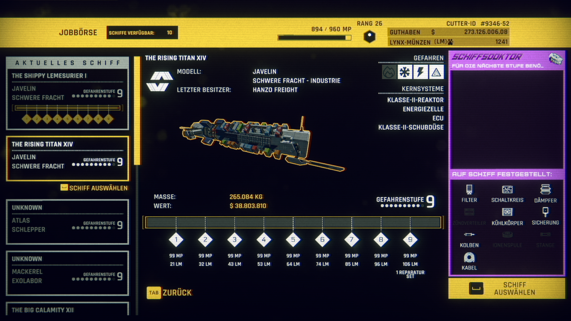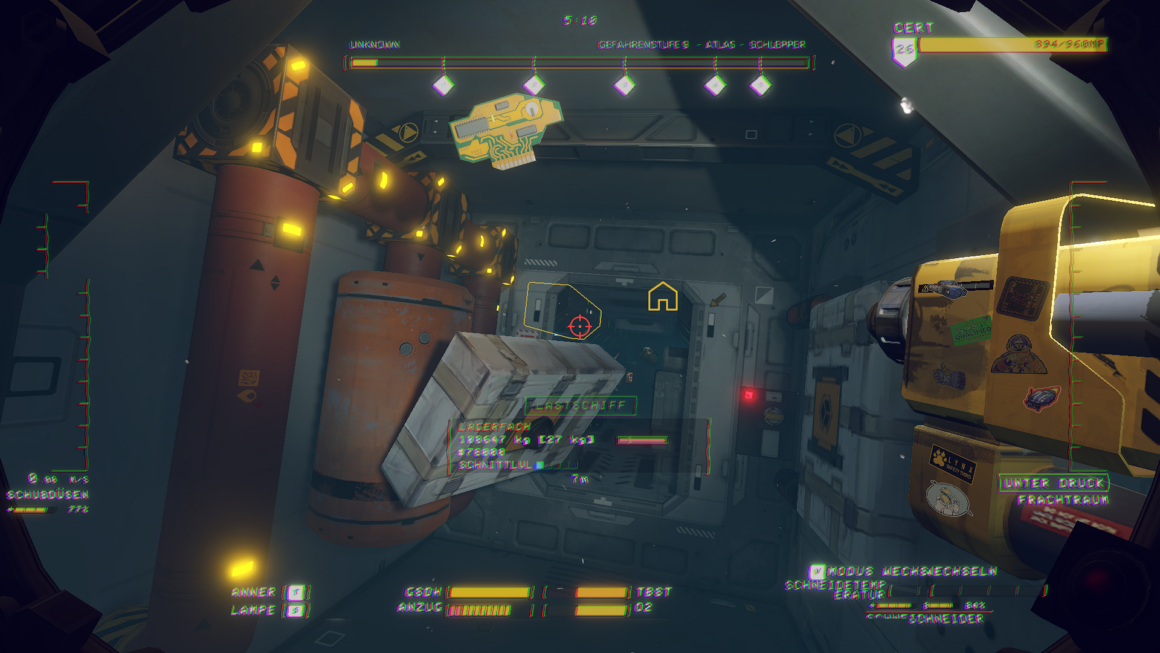 Die 15-Minuten-Missionen waren mir zu stressig, es gibt jedoch einen Modus (mit eigenem Progress), in dem man beliebig lang an einem Schiff werkeln kann – und falls gewollt, auch noch den Sauerstoff-Verlust abschalten. So habe ich dann halt mal 3 Stunden am Stueck eines der groessten Schiffe zerlegt mit allem drum und dran zu 99% Completion – und war irgendwie gluecklich :)