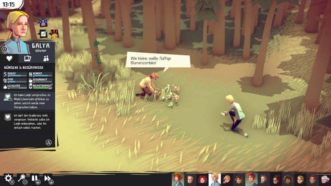 Osmotic Studio, die Macher der Orwell-Reihe, haben ihre Erfahrungen mit der Darstellung von Überwachung und Beeinflussung von Menschen genutzt und damit eine Lebenssimulation – oder Slice of Life-Sim wie sie es selbst nennen – geschaffen, die mich sehr berührt hat. Vor allem, dass man immer nur eine Handvoll Figuren in von ihnen vorgegebenen Parametern steuern kann und die Entscheidungen der anderen einfach hinnehmen muss, unterscheidet es von DEN Sims, bei denen man Leute sogar gegen ihren Willen handeln lassen kann. Natürlich ist es immer noch eine Art von God Game, nur ist der Gott nicht allmächtig, sondern fühlt sich in den bis zu 10 Stunden Spielzeit manchmal fast genauso hilflos und machtlos wie die Trauernden selbst.