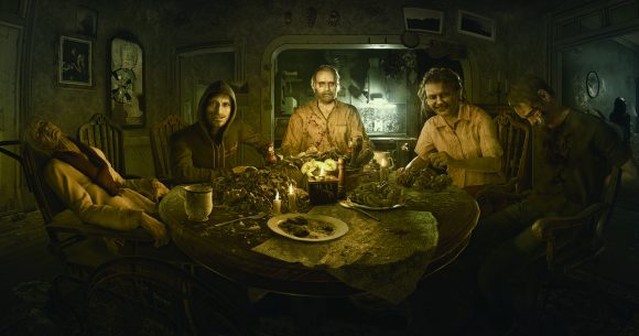 Begeistert bin ich auch von meinen Gastgebern. Hier gelang Capcom der perfekte Mittelweg aus angsteinflößenden, wahnsinnigen Charakteren und einem leichten Augenzwinkern. In der Sequenz, in der man mit der kompletten Horror-Sippe am Tisch zum Abendessen sitzt, konnte ich mich nicht entscheiden, ob ich jetzt Schiss kriegen sollte oder lachen muss. Mal abgesehen davon, dass die VR-Variante die Immersion ins kaum Erträgliche schießt (im allerbesten Sinne), macht es auch Freude, sich mal „virtuell, aber trotzdem plastisch“ in solchen Kreisen zu bewegen. Das ist mir sonst im wahren Leben nicht vergönnt.