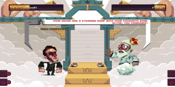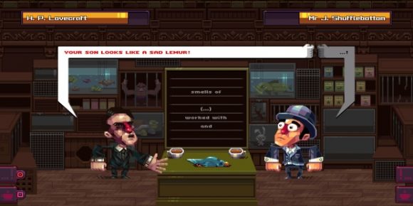 Der Beleidigungskampf läuft dabei ähnlich wie ein Pokemon-Duell. Zwei urenglische Gentlemen (auch eine Dame ist dabei sowie H. P. Lovecraft als Gastcharakter) fechten mit fiesen Worten um ihre Ehre. Diese Ehre verträgt 100 Trefferpunkte und wird als Street Fighter-artige Energieleiste über ihren Köpfen dargestellt.