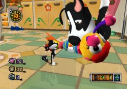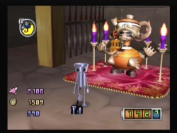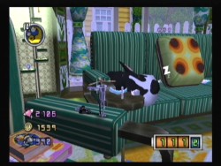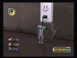 Chibi-Robo hat anfangs ein kleines Problem mit seiner Energieversorgung, denn sein eingebauter Akku hat nur eine recht geringe Kapazität, was dazu führt, dass er in relativ kurzen Abständen eine Steckdose aufsuchen muss, um sich wieder aufzuladen (und bei dieser Gelegenheit auch gleich zu speichern). Dies geschieht über einen Stecker, der ihm gewissermaßen aus dem A**** hängt. Dies führt, zusammen mit dem Tag-und-Nacht-Wechsel des Spiels, anfänglich dazu, dass einem das Gameplay etwas zäh vorkommt. Aber keine Sorge, mit jedem Aufstieg in der Chibi-Robo-Weltrangliste erhält der kleine Held vom Hersteller einen etwas stärkeren Akku als Belohnung, so dass das Aufladen nach relativ kurzer Zeit kaum noch den Spielfluss bremst und eher zu einem strategischen Spielelement wird. Auch den Tag-und-Nacht-Wechsel empfand ich persönlich nicht als störend, da auf diese Weise ein klein wenig Zeitdruck für aufwendigere Aktionen entsteht, der dem Spiel nicht schadet, sondern es bereichert, weil man ein wenig Zeitplanung betreiben muss. Wer die Pikmin-Spiele kennt, kann sich in etwa vorstellen, wie das läuft. Allerdings gibt es hier kein Tages-Limit, das den Spieler wie im ersten Pikmin-Teil nachhaltig frusten könnte, weil einem die Zeit davon rennt. Schafft man etwas nicht mehr rechtzeitig vor dem Tageszeitenwechsel, so erledigt man es eben danach. Und dies ist auch symptomatisch für das ganze Spiel: Chibi-Robo ist nicht wirklich schwer. Sterben kann man auch nicht. Es ist ein Spiel wie ein gutes Buch, das man am besten mit heißem Kakao und Keksen genießt…